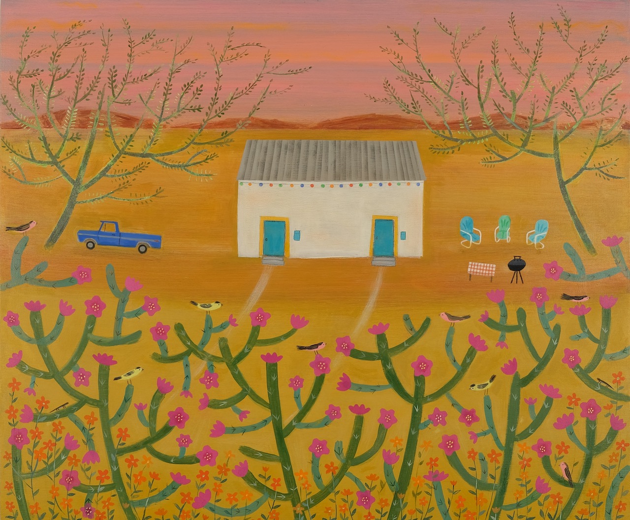 Backyard Barbecue, acrylic and pencil on panel, 20 x 24 inches