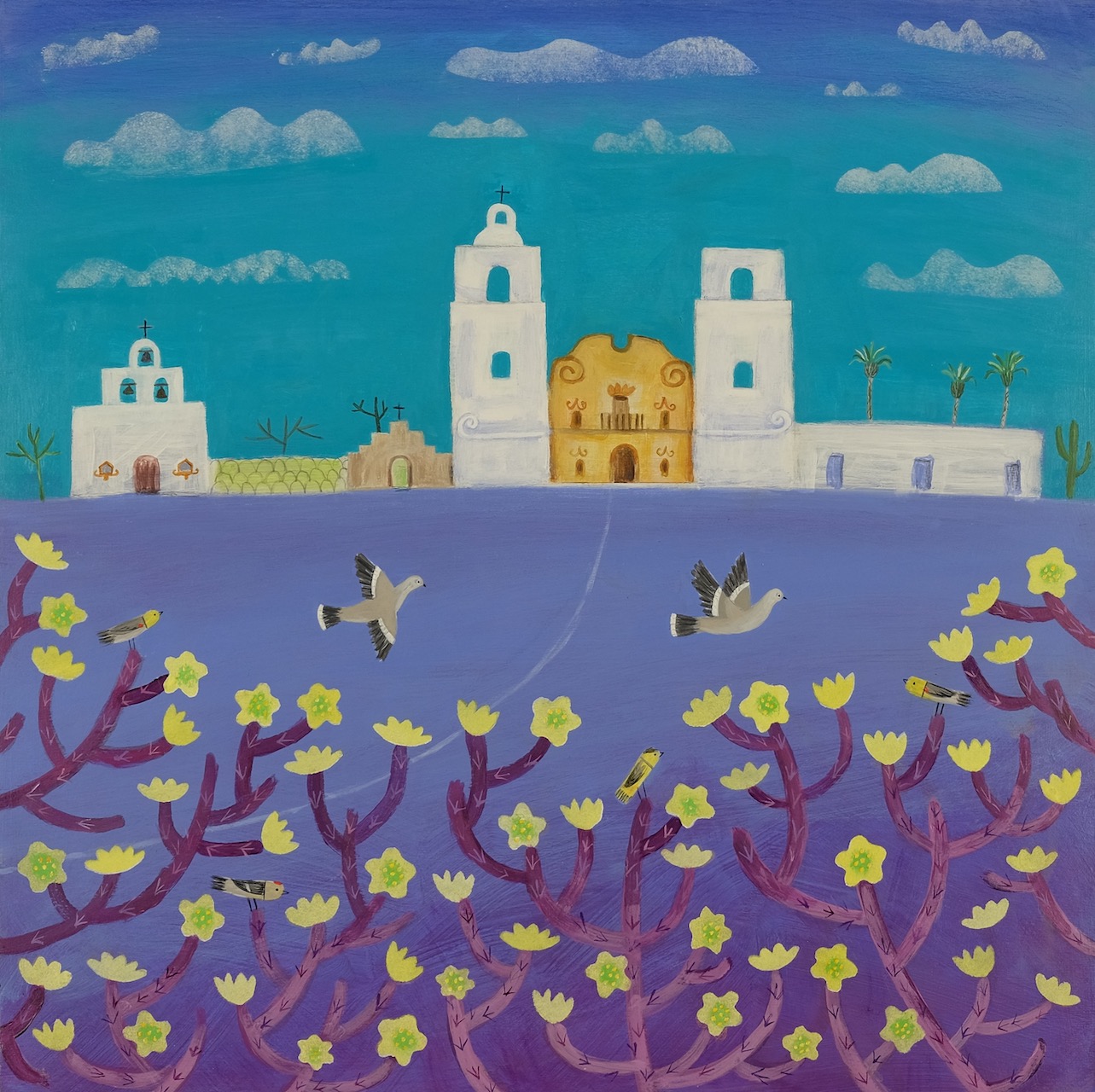 Doves of the Desert, acrylic and pencil on panel, 18 x 18 inches