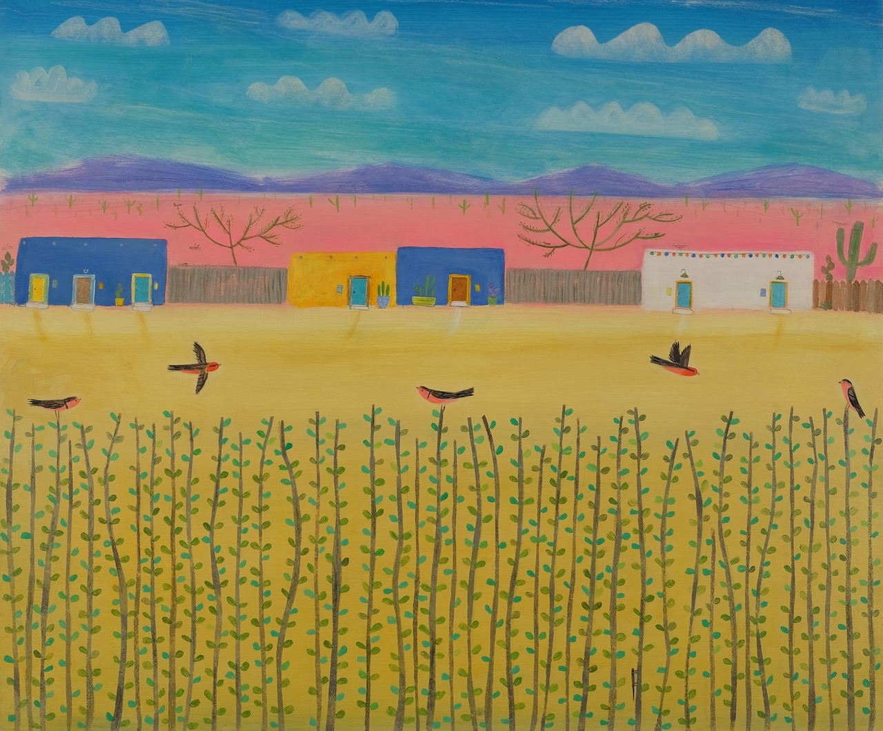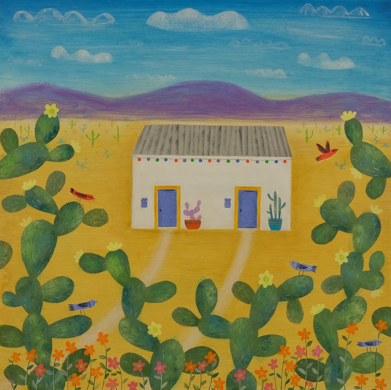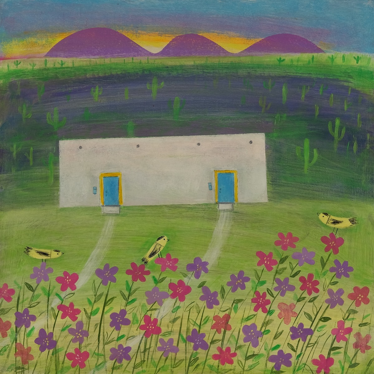Little Adobe Duplex, acrylic and pencil on panel, 18 x 18 inches