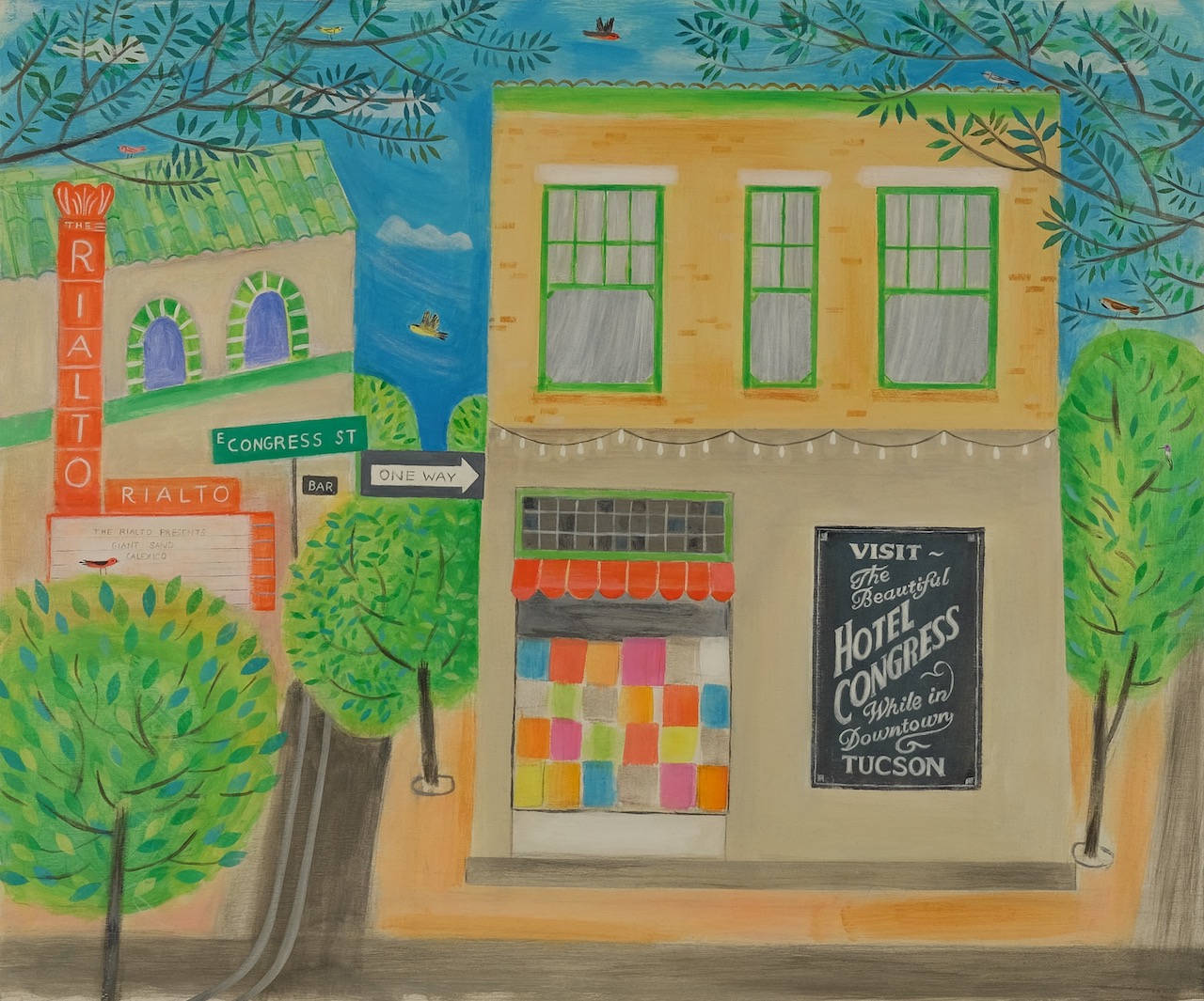 Hotel Congress, acrylic and pencil on panel, 20 x 24 inches