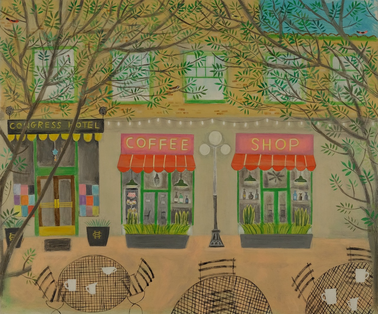 The Cup Cafe, acrylic and pencil on panel, 20 x 24 inches